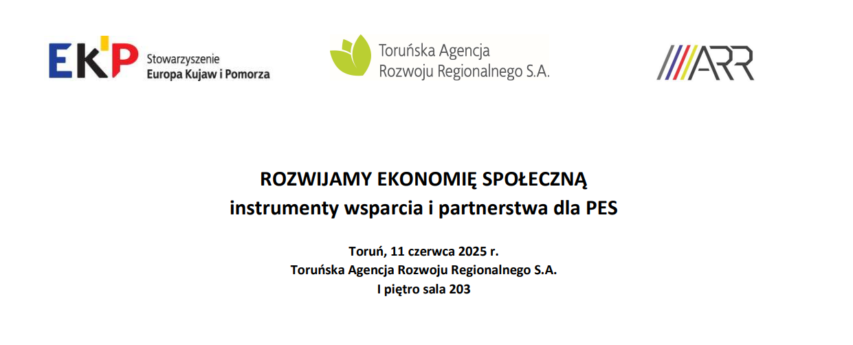 03.06.2025Zachęcamy do udziału w szkoleniu pt. „Rozwijamy ekonomię społeczną – instrumenty wsparcia i partnerstwa dla PES”, które odbędzie się 11 czerwca 2025 r. o godz. 10:00 w siedzibie Toruńskiej Agencji Rozwoju Regionalnego S.A. (ul. Włocławska 167, Toruń, I piętro, sala 203).